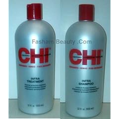 chi Infra Shampoo And Treatment 32 ozchi Infra Shampoo-Moisture Therapy Shampoo - is specifically developed to work in conjunction with the chi line. chi Infra Shampoo with Cationic Hydration Interlink will provide gentle luxurious cleansing to the hair while providing a balance of moisture for softness and proteins for strength. Can be used on daily basis.