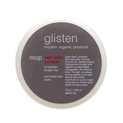 mop High Shine Pomade mop Glisten High Shine Pomade is for a pliable hold and definition. Super style is achieved with super shine. Certified Organic oat straw, horsetail and evening primrose oil work together to create pliable manageability with reflective shine. This light, non-greasy formula enables you to style, shine and protect. Accentuate an up-do or apply a final touch to shorter styles.Images ScreenShot